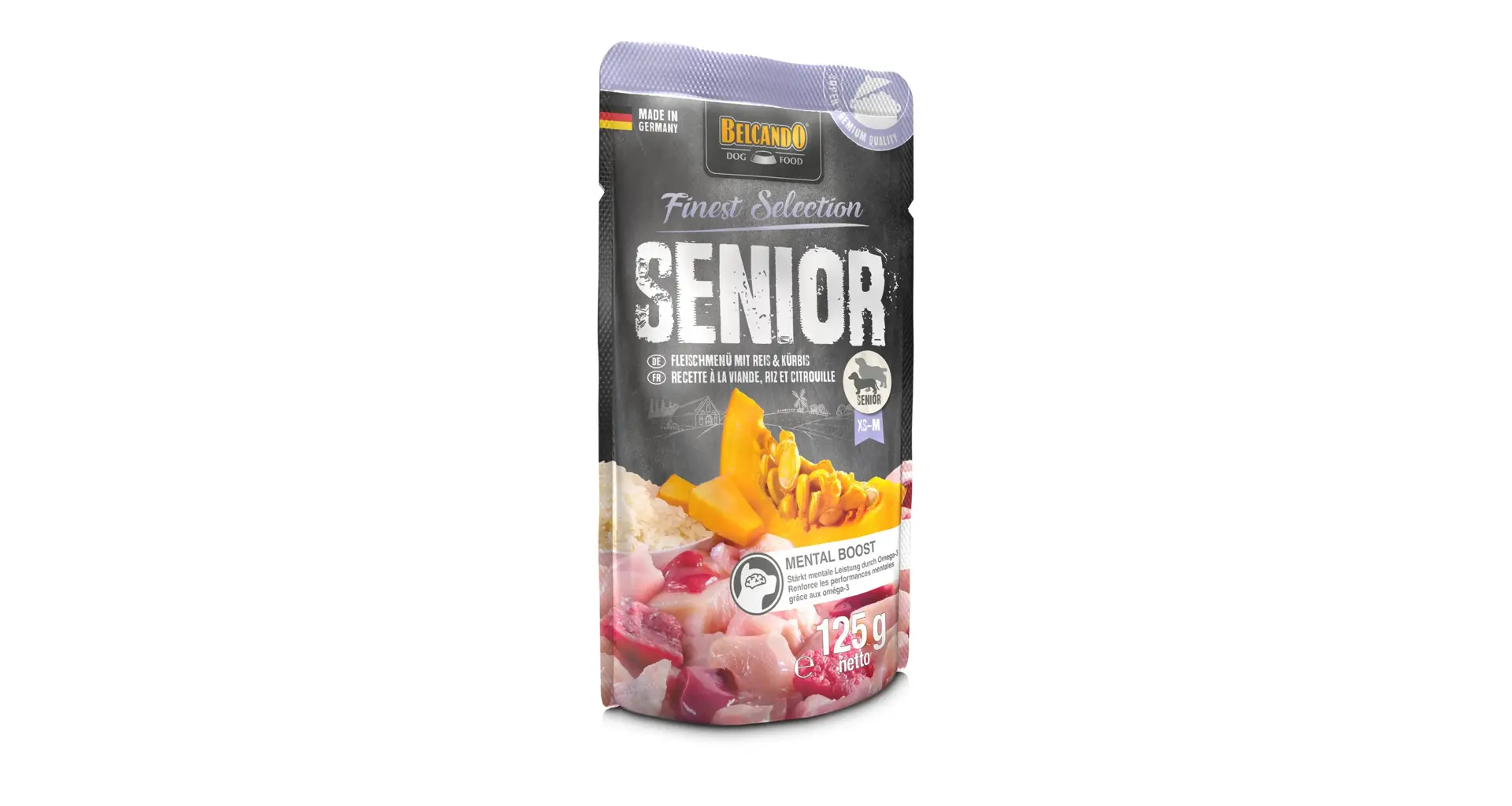 Když psi moudří, zaslouží si i plnou misku krmiva, které je udrží ve skvělé kondici. Belcando Senior s kuřecím, telecím a hovězím, rýží a dýní je receptura vytvořená speciálně pro starší psy, jejichž potřeby se s věkem mění. Tuhle kapsičku zvládnou lehce strávit i ti, kterým už zuby tolik neslouží.